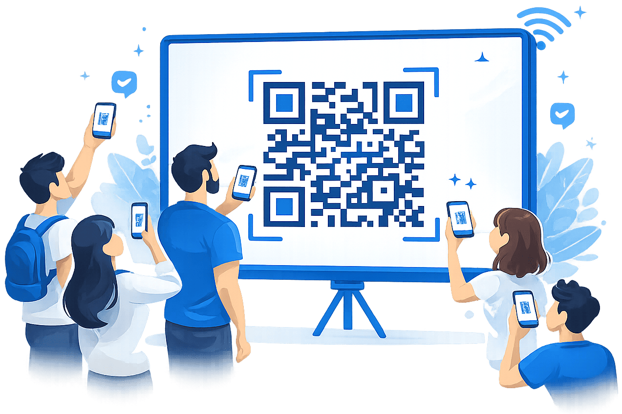 Exiba o QR CodeProjete o QR Code dinâmico em uma tela. Ele se renova automaticamente, impedindo compartilhamento.